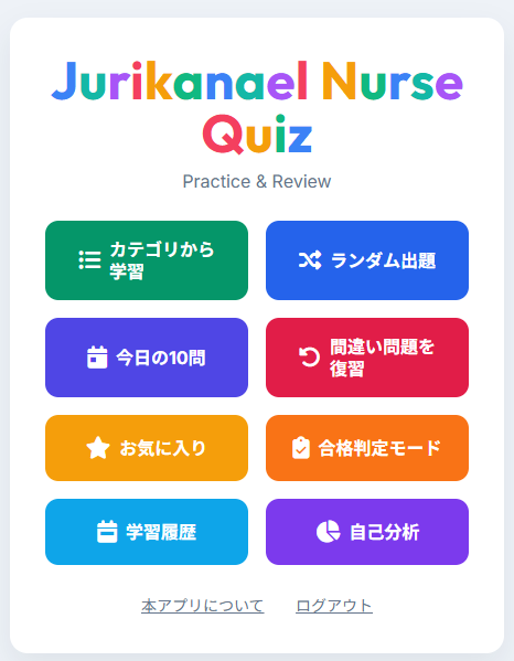 このページでは、JURIKANAËLの学習アプリをまとめています。現在はクイズアプリを公開中。今後、順次追加予定です。 JURIKANAËL Nurse Quiz 認定審査対策や臨床判断力を鍛えるクイズ形式の学習アプリ。スキマ時間に繰り返し解くことで、知識の定着を支援します。 JURIKANAËL Nurse Quiz